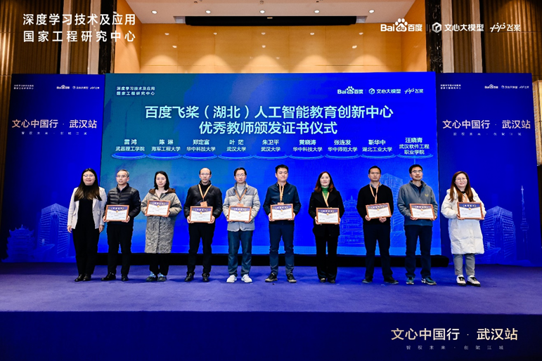 2025年1月7日,由深度学习技术及应用国家工程研究中心与武汉市汉阳区人民政府指导,百度主办,汉阳区商务局、汉阳区龙阳街道、百度飞桨(武汉)人工智能产业赋能中心共同承办的“文心中国行·武汉站”活动在武汉顺利举行。我院教师靳华中在活动中荣获“百度飞桨(湖北)人工智能教育创新中心优秀教师”称号,以表彰其在百度飞桨星河社区《百度飞桨平台AI初阶训练》等课程开设中的卓越表现与杰出贡献。