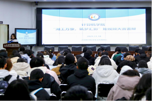 为丰富校园文化生活,激发学子用镜头记录校园、传递青春的热情,11月18日,我院在土建楼三楼报告厅成功举办计算机学院“IT 精英杯”系列之“湖工万象,筑梦汇影”短视频大赛答辩活动。计算机学院党委副书记杨少飞老师、学生工作部周安盛老师、保卫处冯维光老师、艺术设计学院陈叶蕾老师、党委宣传部史凡老师、以及计算机学工办艾力扎提老师和刘龙颖老师担任评委,100余名参赛学生参与,现场气氛热烈。