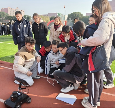 活动现场,我院展示的智能小车不仅能够自主避障、循迹行驶,还能完成语音控制、视觉识别等交互任务。同学们围在一起,全神贯注地观看小车运行,不时发出惊叹与掌声。我院学生团队在现场耐心讲解智能小车背后的原理与技术,从嵌入式系统、传感器融合到简单的机器学习算法,用通俗易懂的语言揭开了人工智能技术的神秘面纱。