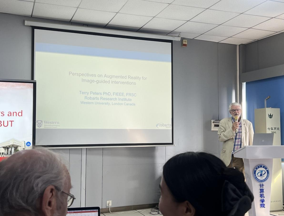随后,先由Peters教授为我校师生做了题为Perspectives on Augmented Reality for Image-Guided Interventions的学术讲座。再由Fenster教授为我校师生做了题为3D Ultrasound for Image-Guided Intervention and Point-of-Care Diagnostics的学术讲座。