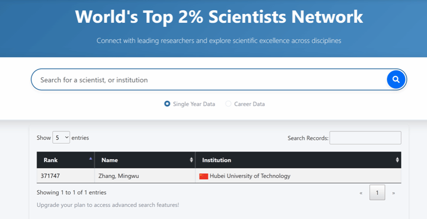 9月19日,美国斯坦福大学和国际权威学术出版社爱思唯尔共同发布《2025年全球前2%顶尖科学家榜单》(World's Top 2% Scientists 2025)。学院张明武教授再度名列“年度影响力”和“终身科学影响力”双榜单。这是张明武教授连续4年入选该榜单。