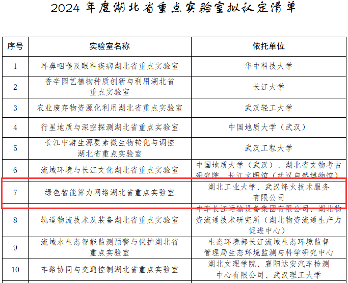 日前,湖北省科技厅公布了《省科技厅关于认定耳鼻咽喉及眼科疾病等17家湖北省重点实验室的通知》,学院“绿色智能算力网络湖北省重点实验室”获批认定;湖北省发展和改革委员会印发《关于公布2024年湖北省工程研究中心认定名单的通知》,学院“制造工业数智化技术与应用湖北省工程研究中心”获批认定。