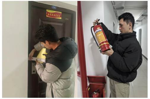 离校高峰时段,学院组建由辅导员、学生干部及临时网格员构成的专项检查小组,开展宿舍安全与消防隐患排查行动。检查人员逐间核查电源关闭、门窗锁闭情况,从源头防范用电及防盗风险。同时对宿舍楼栋消防栓、灭火器等设施的完好性及有效期进行全面核查,筑牢校园消防安全“防火墙”。学生全部离校后,迅速启动假期宿舍常态化管理,工作人员逐间落实封寝要求,全覆盖排查水电关闭情况及违规物品留存问题,进一步巩固安全防线。